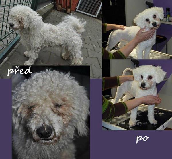 Dne 17.1.2015 se k nám dostal malý bílý kříženec, byl celý špinavý, zacuchaný. Choval se ale velmi slušně, byl mazlivý a přátelský ke všem útulkovým kamarádům. V útulku pobyl necelé 2 měsíce, odvezli si ho 11.3.2015 do Třebíče jako společníka pro vážně nemocnou paní, aby nebyla sama.